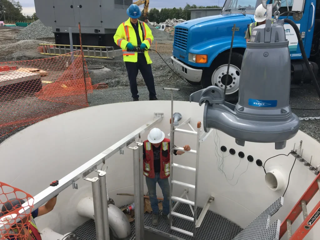 - Concrete: Concrete wet wells are constructed on site, typically taking 8-12 weeks, requiring multiple trades, extensive dewatering, and numerous truckloads of materials and equipment.